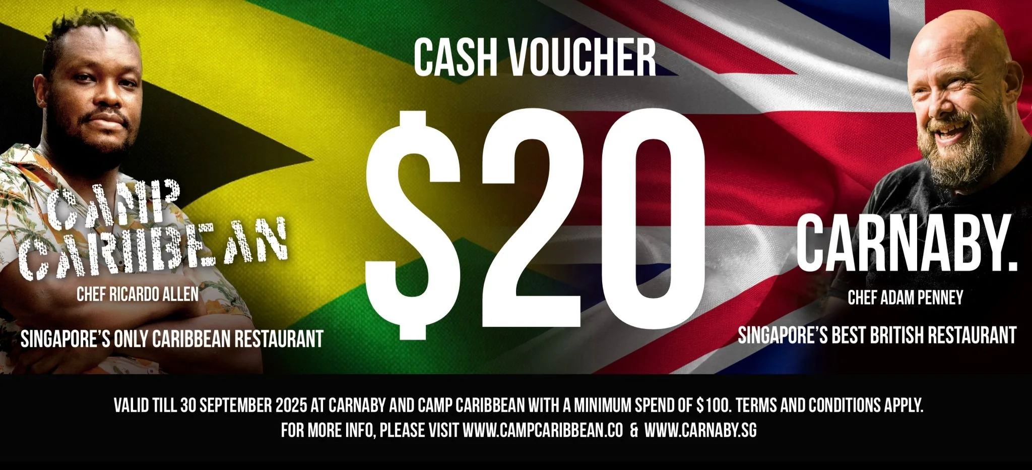 Voucher Value: $20 off with a minimum spend of $100 in a single bill (before service charge and prevailing GST, if applicable).